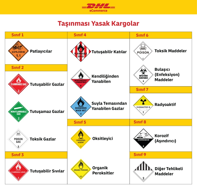 DHL eCommerce tarafından belirlenen taşınması yasak kargolar |